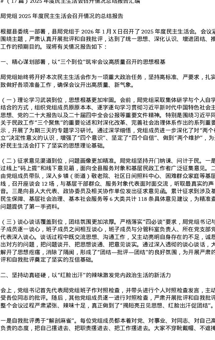 汇编:2025年度xxxxx召开情况总结报告17篇