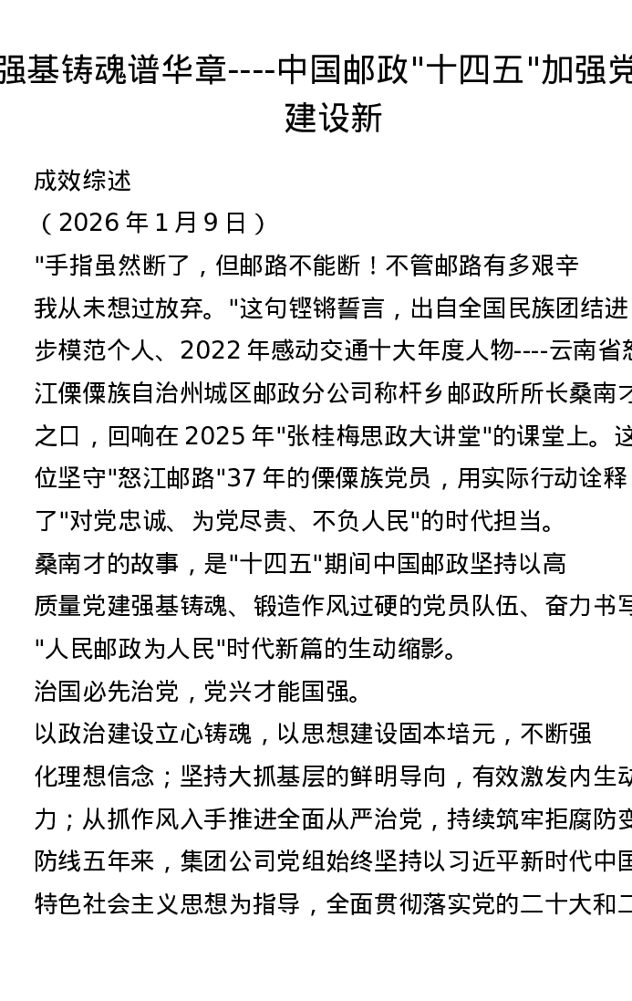 强基铸魂谱华章——中国邮政十四五加强党的建设新成效综述