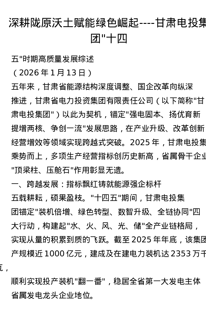 深耕陇原沃土 赋能绿色崛起——甘肃电投集团十四五时期高质量发展综述