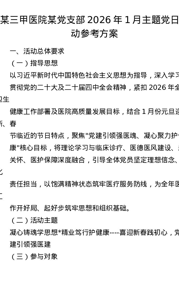 2026年1月份医院主题党日活动参考方案