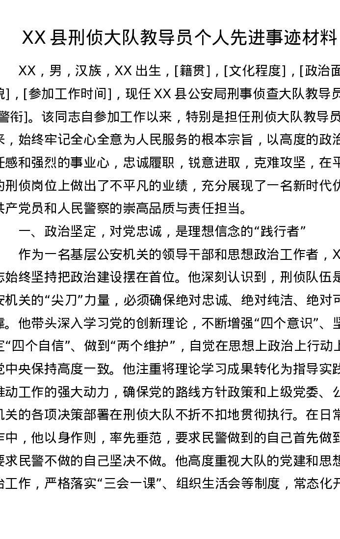XX县刑侦大队教导员个人先进事迹材料