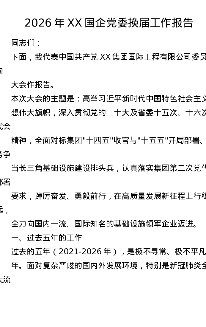 2026年XX国企党委换届工作报告