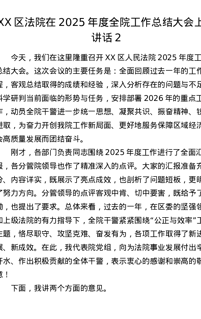 XX区法院在2025年度全院工作总结大会上的讲话2