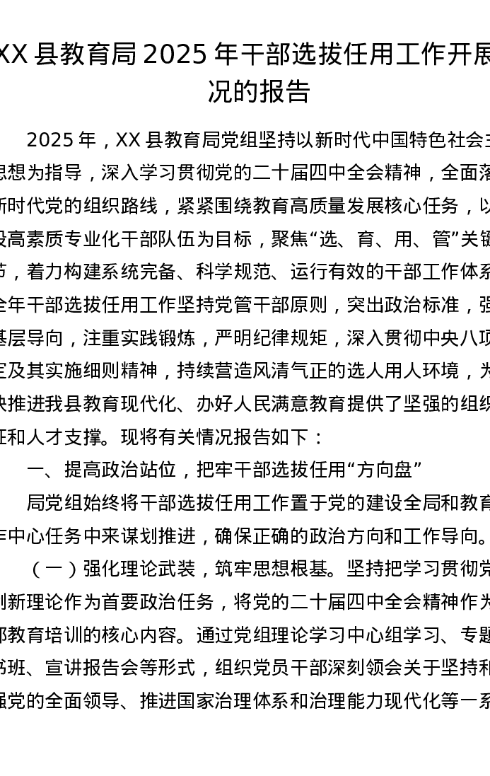 XX县教育局2025年干部选拔任用工作开展情况的报告