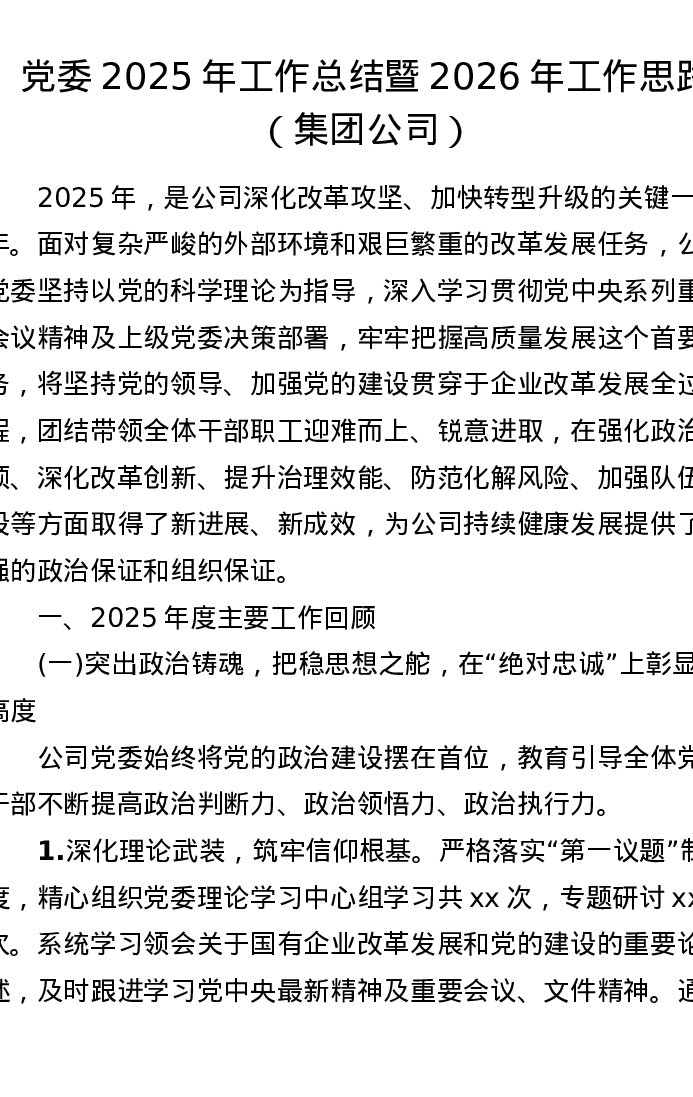 党委2025年工作总结暨2026年工作思路(集团公司)