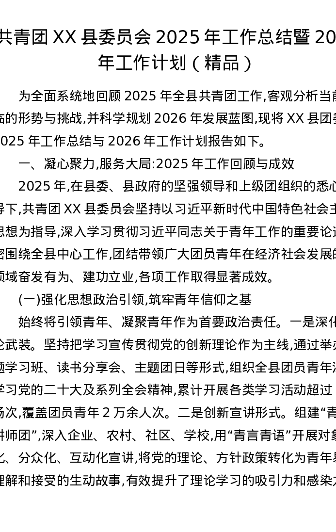 共青团XX县委员会2025年工作总结暨2026年工作计划