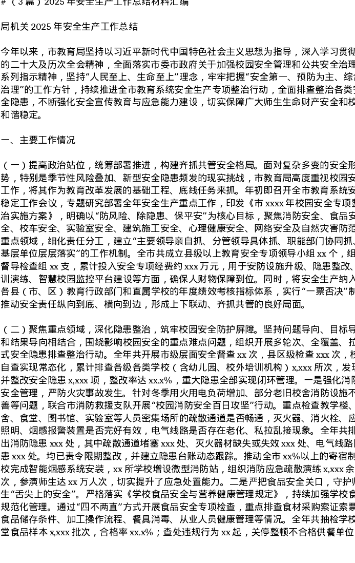 汇编:2025年安全生产工作总结材料3篇