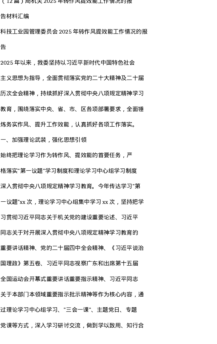 汇编:局机关2025年转作风提效能工作情况的报告材料12篇