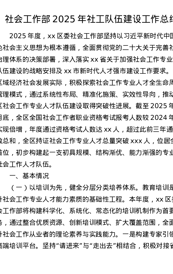 社会工作部2025年社工队伍建设工作总结