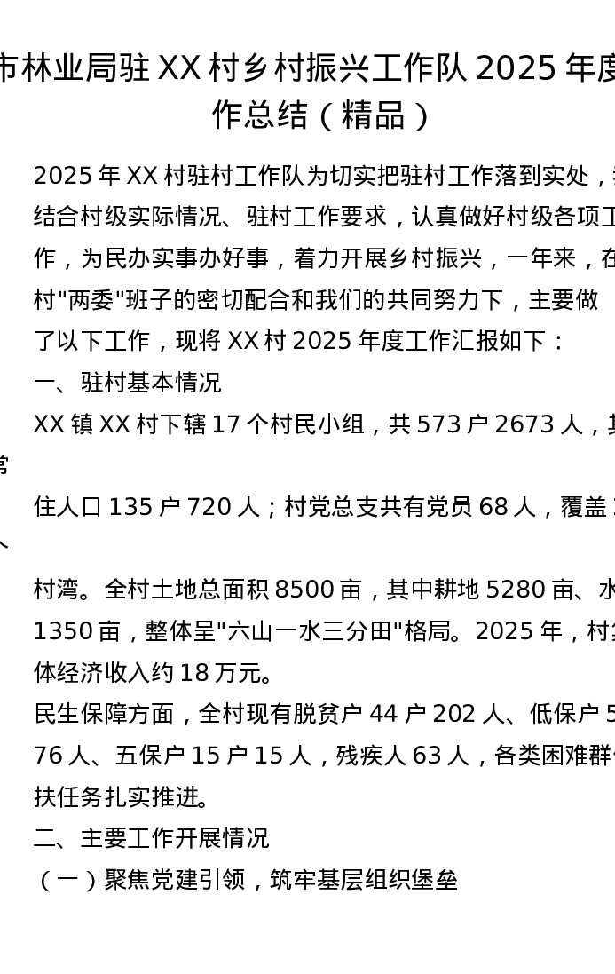 市林业局驻XX村乡村振兴工作队2025年度工作总结