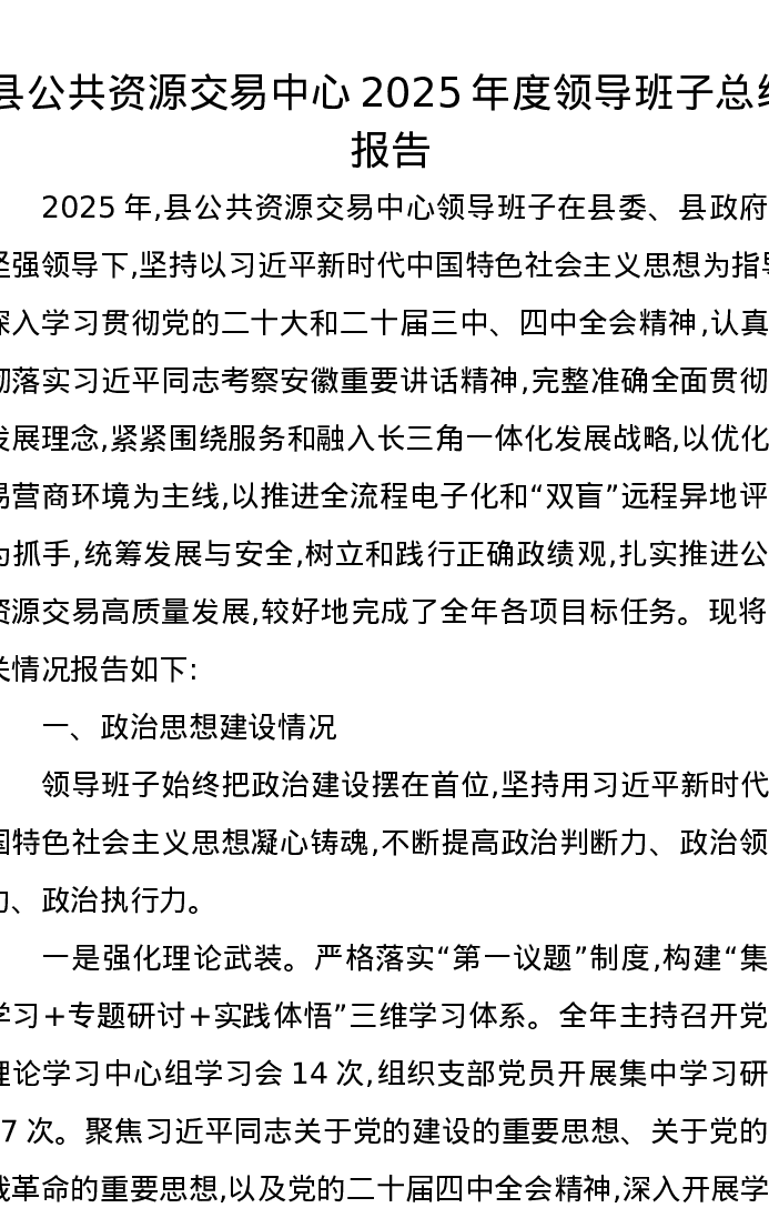 县公共资源交易中心2025年度领导班子总结报告