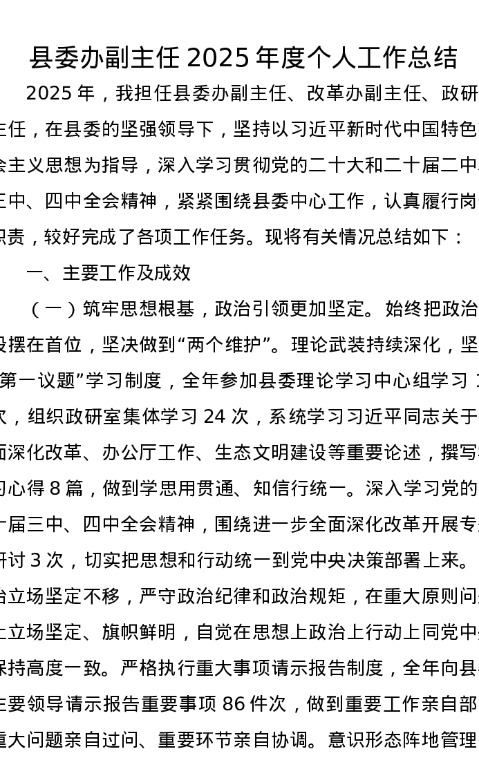 县委办副主任2025年度个人工作总结
