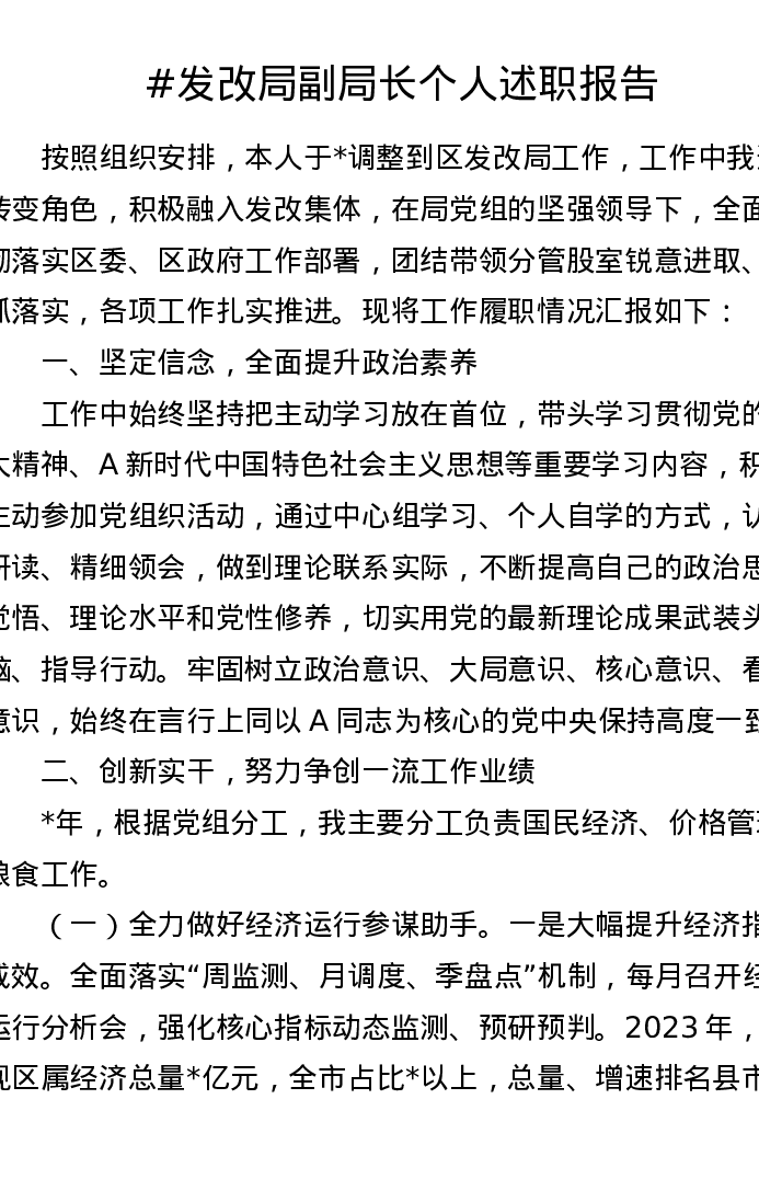 发改局副局长个人述职报告