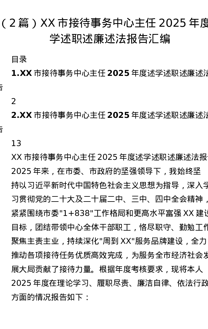 汇编:XX市接待事务中心主任2025年度述学述职述廉述法报告2篇