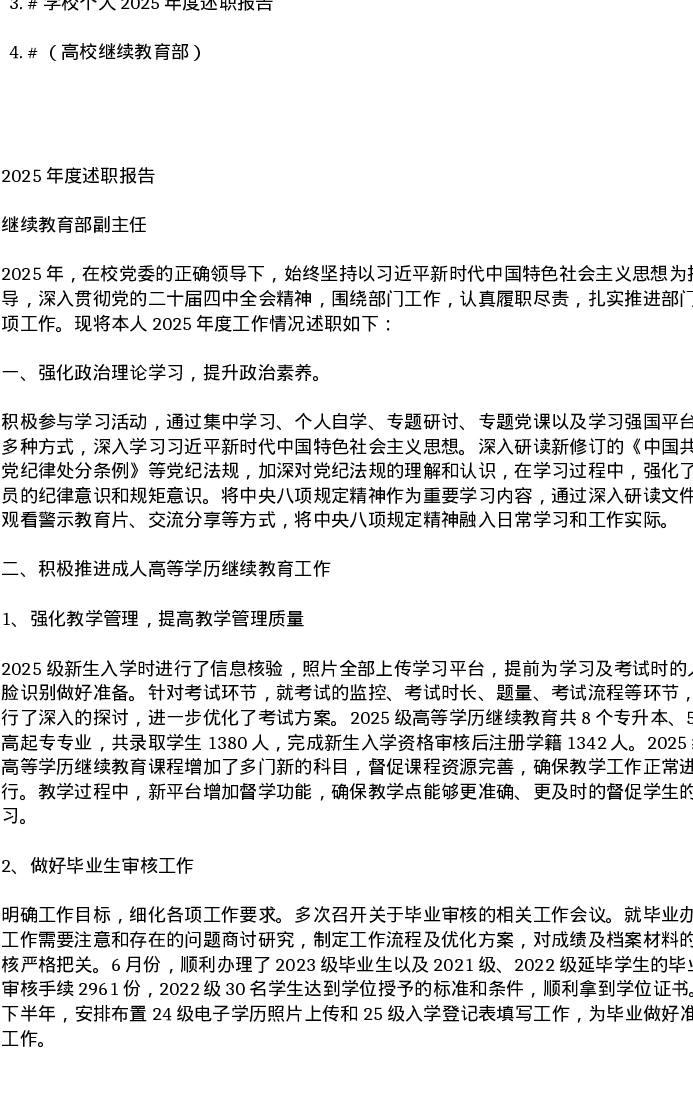 汇编:学校个人2025年度述职报告(高校继续教育部)3篇