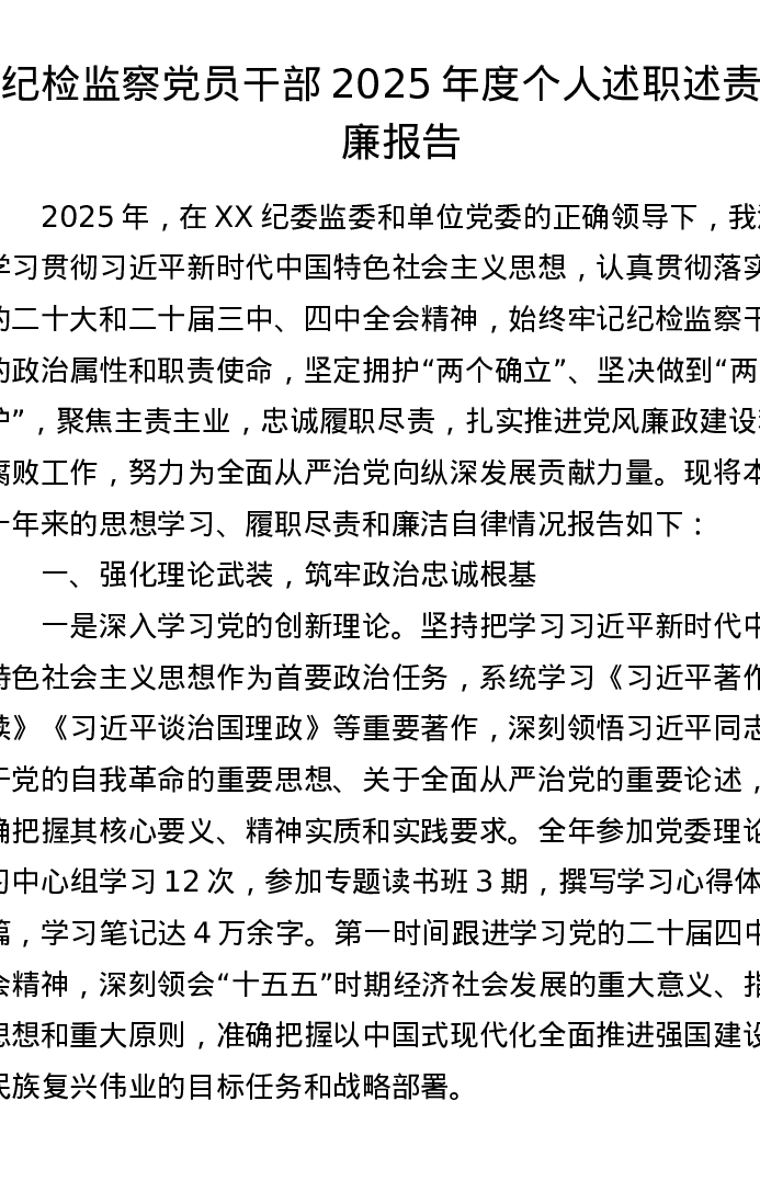 纪检监察党员干部2025年度个人述职述责述廉报告