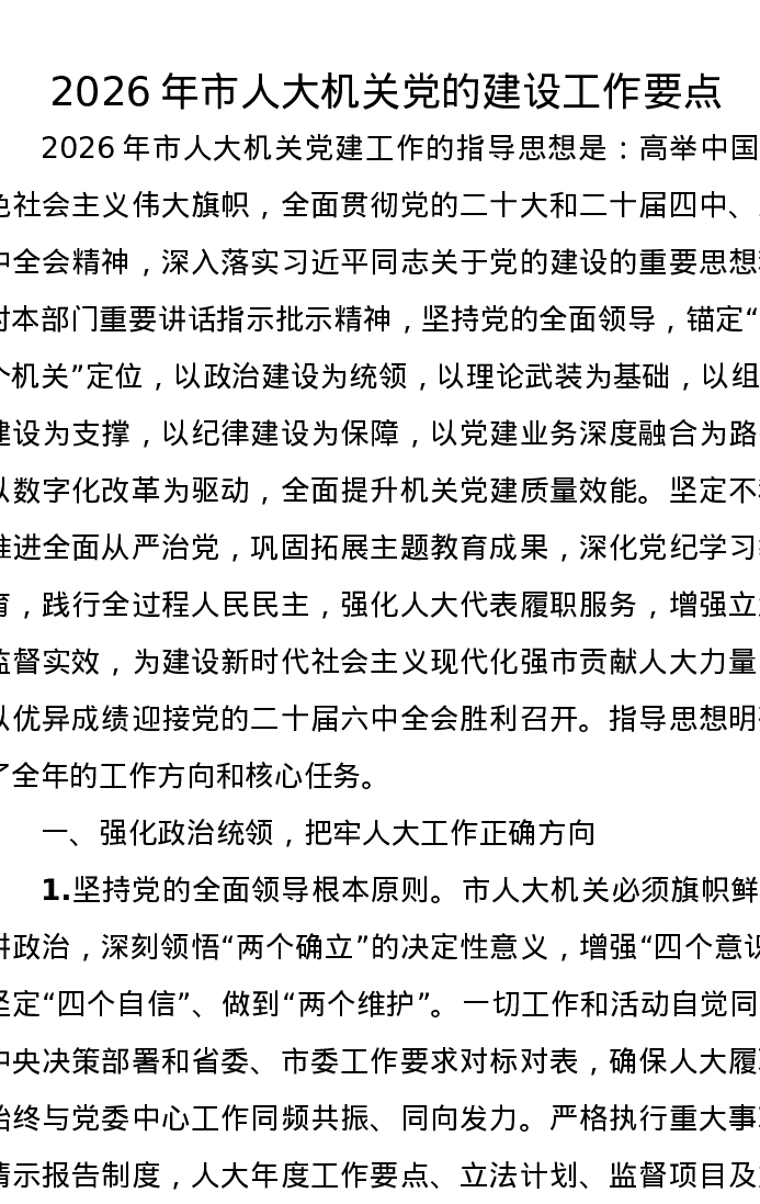 2026年市人大机关党的建设工作要点
