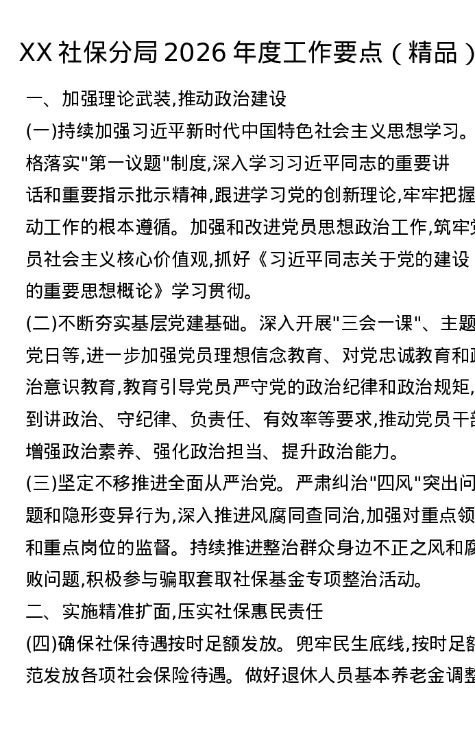 XX社保分局2026年度工作要点