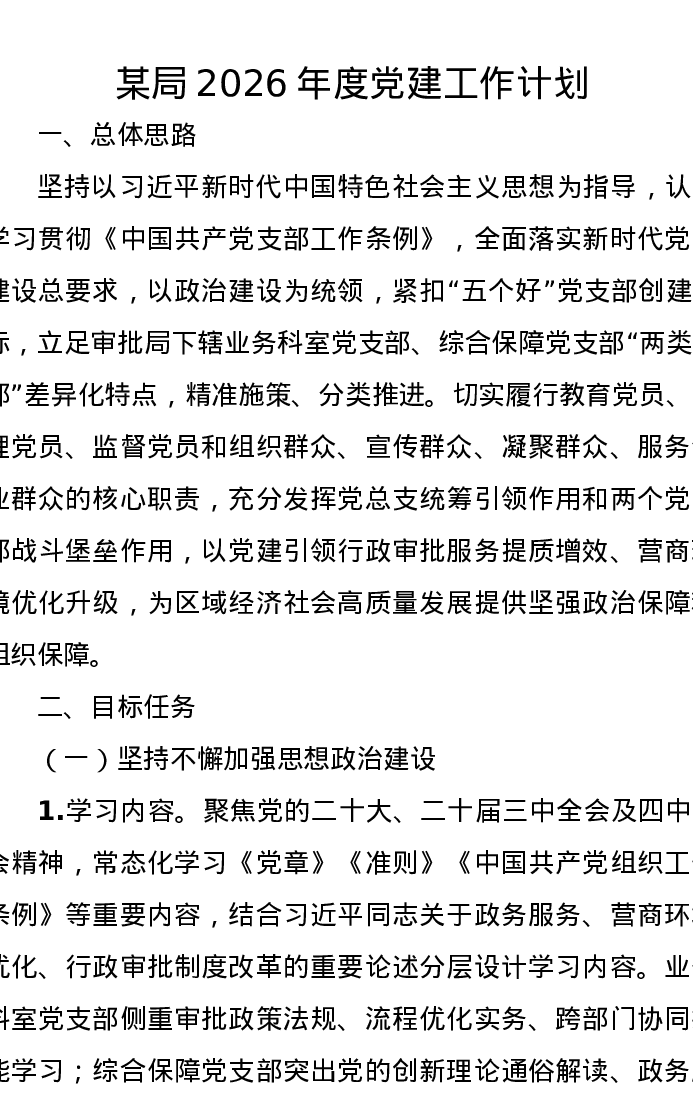 某局2026年度党建工作计划