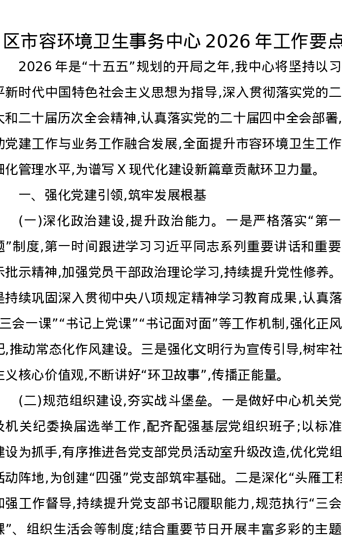 区市容环境卫生事务中心2026年工作要点