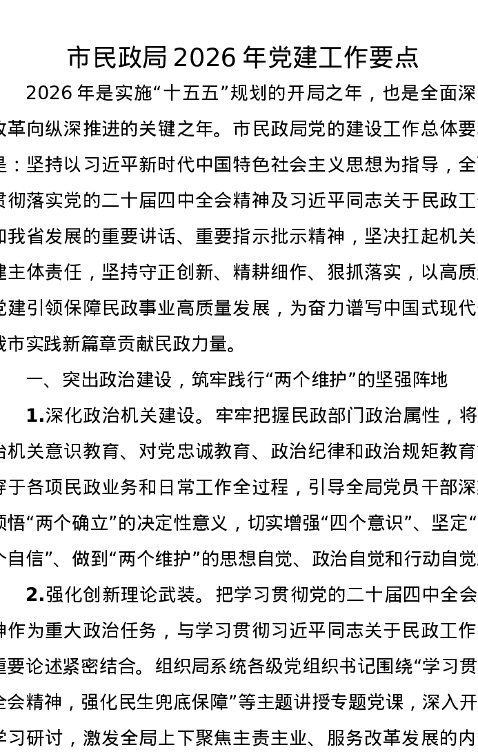市民政局2026年党建工作要点