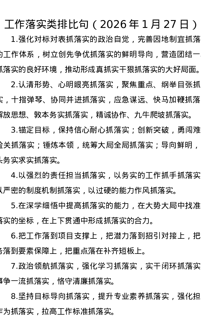 工作落实类排比句(2026年1月27日)