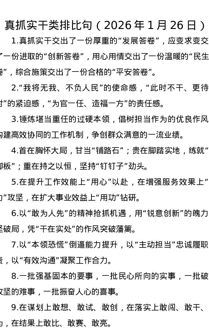 真抓实干类排比句(2026年1月26日)