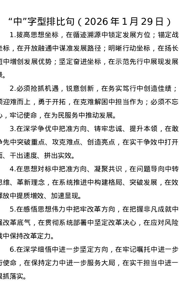 中字型排比句(2026年1月29日)