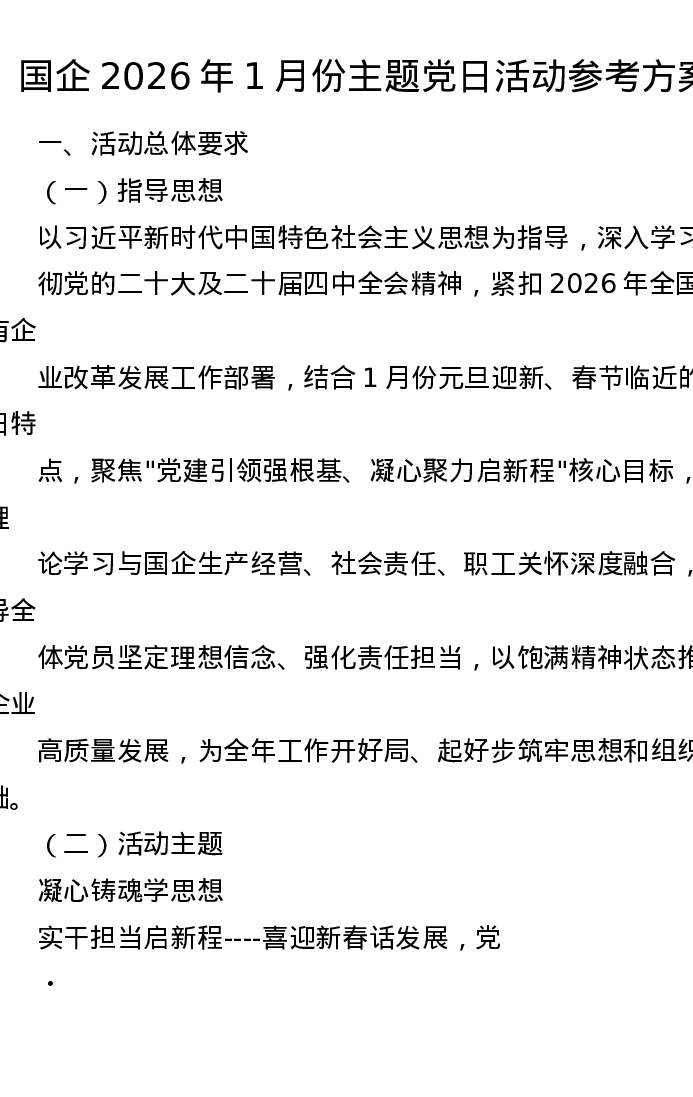 2026年1月份国企主题党日活动参考方案