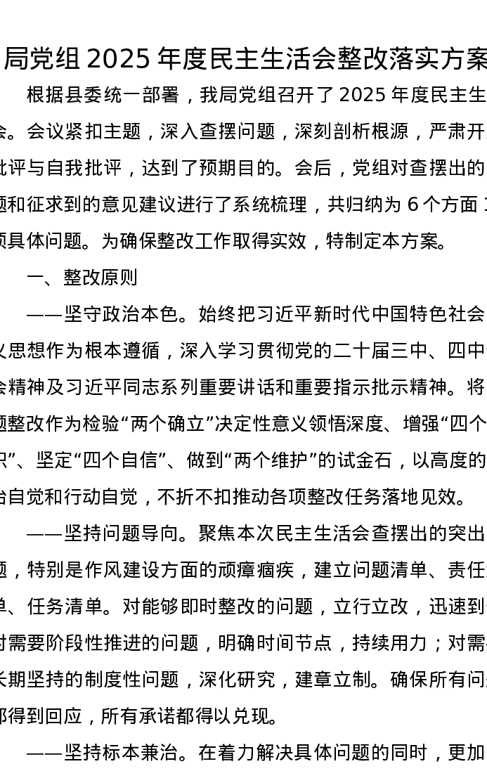 局党组2025年度xxxxx整改落实方案