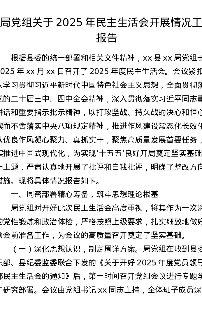 局党组关于2025年xxxxx开展情况工作报告