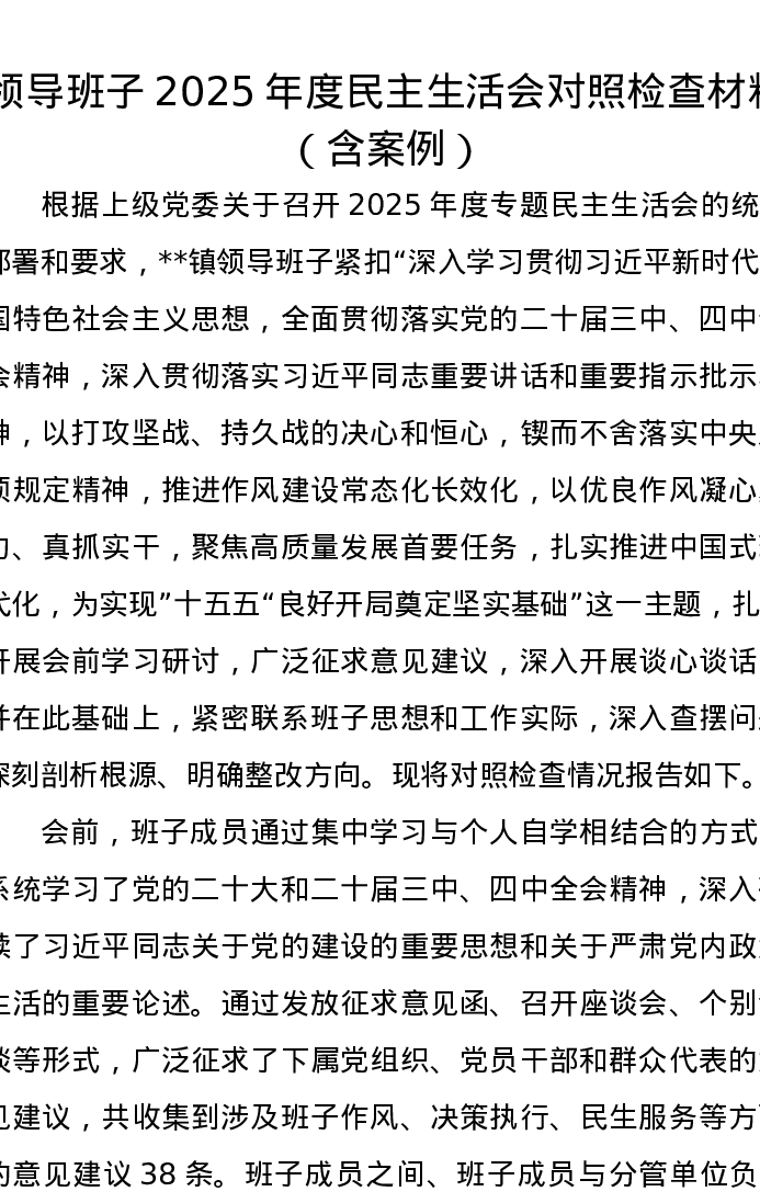 领导班子2025年度xxxxx对照检查材料(含案例)