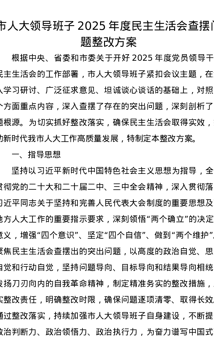 市人大领导班子2025年度xxxxx查摆问题整改方案