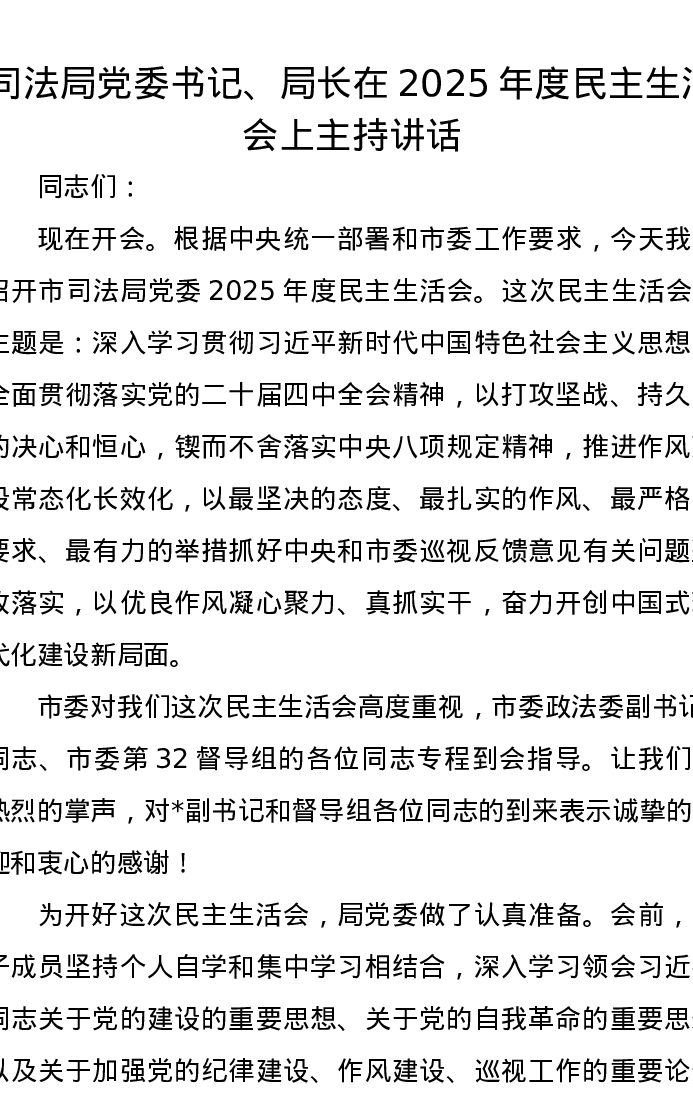 司法局党委书记、局长在2025年度xxxxx上主持讲话