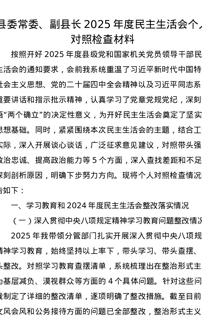 县委常委、副县长2025年度xxxxx个人对照检查材料