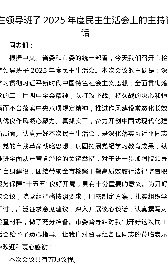 在领导班子2025年度xxxxx上的主持讲话