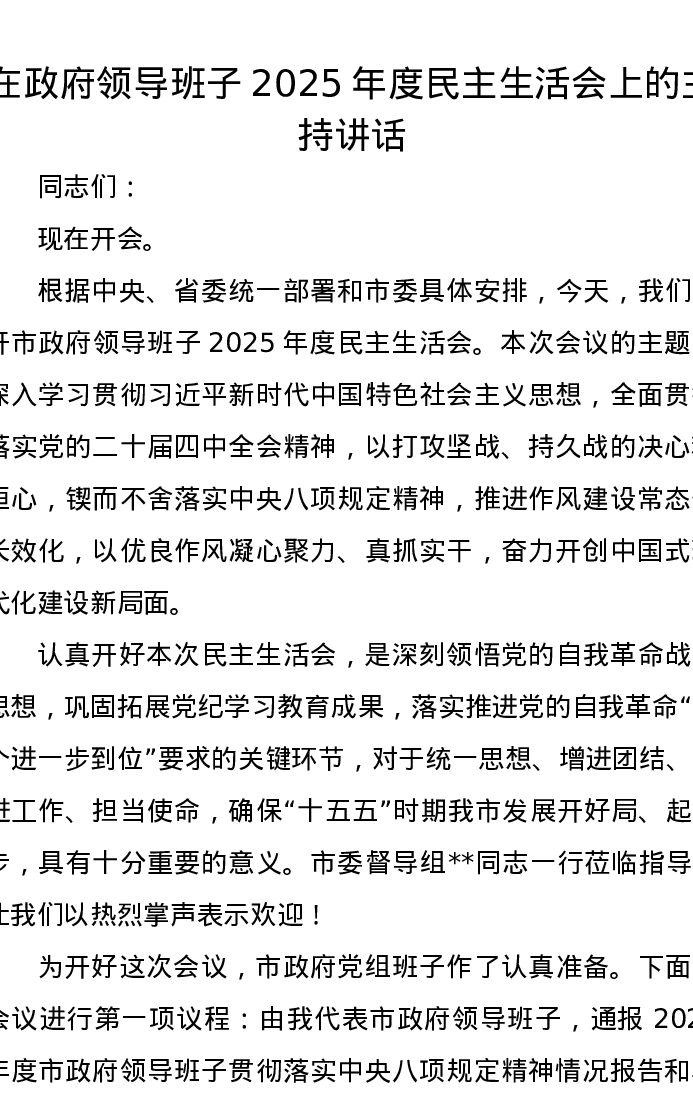 在政府领导班子2025年度xxxxx上的主持讲话
