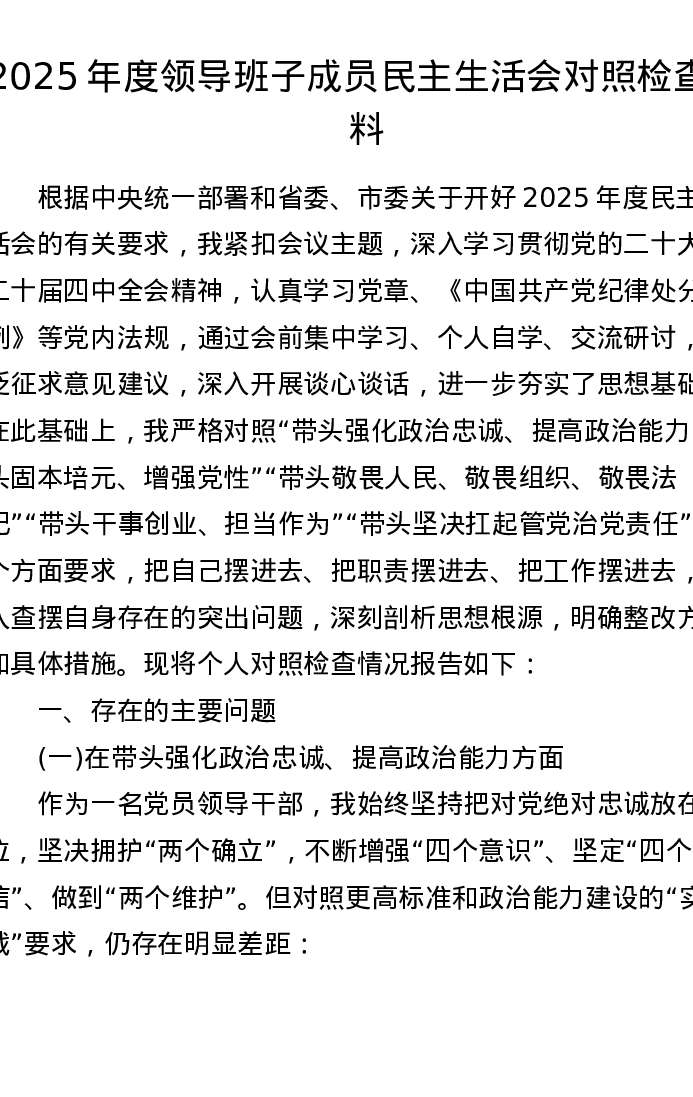 【原创】2025年度领导班子成员xxxxx对照检查材料