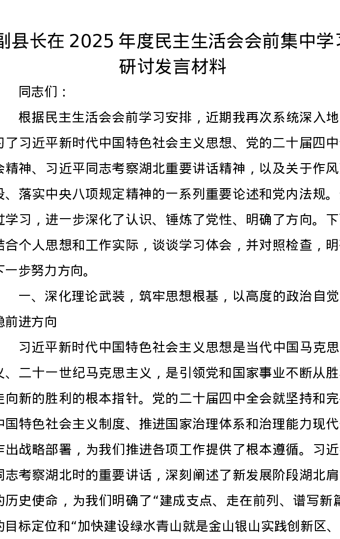 副县长在2025年度xxxxx会前集中学习研讨发言材料
