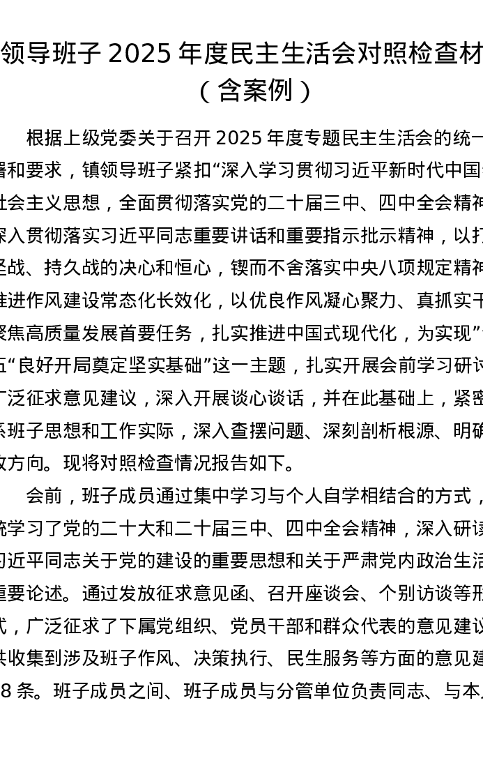 领导班子2025年度xxxxx对照检查材料(含案例)