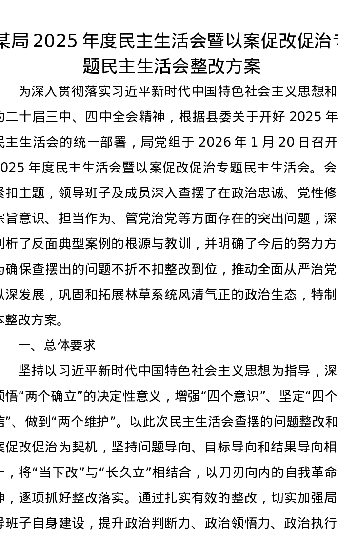某局2025年度xxxxx暨以案促改促治专题xxxxx整改方案