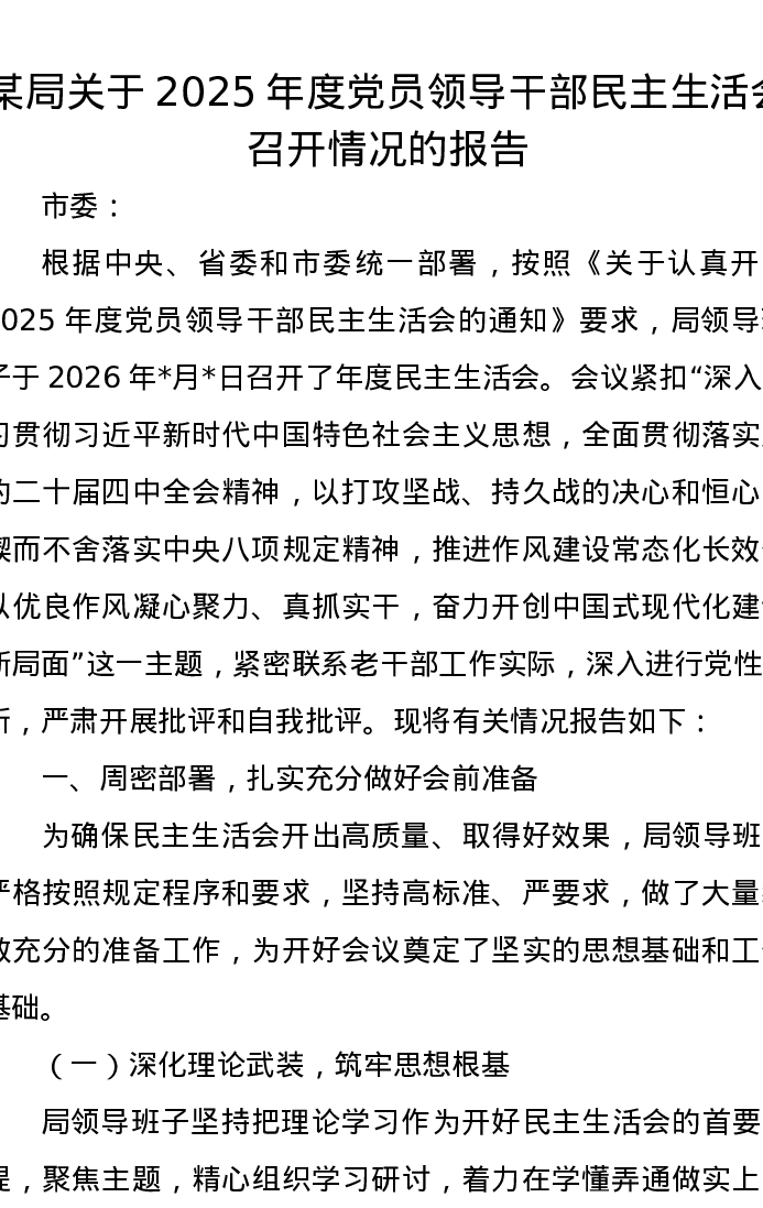 某局关于2025年度党员领导干部xxxxx召开情况的报告