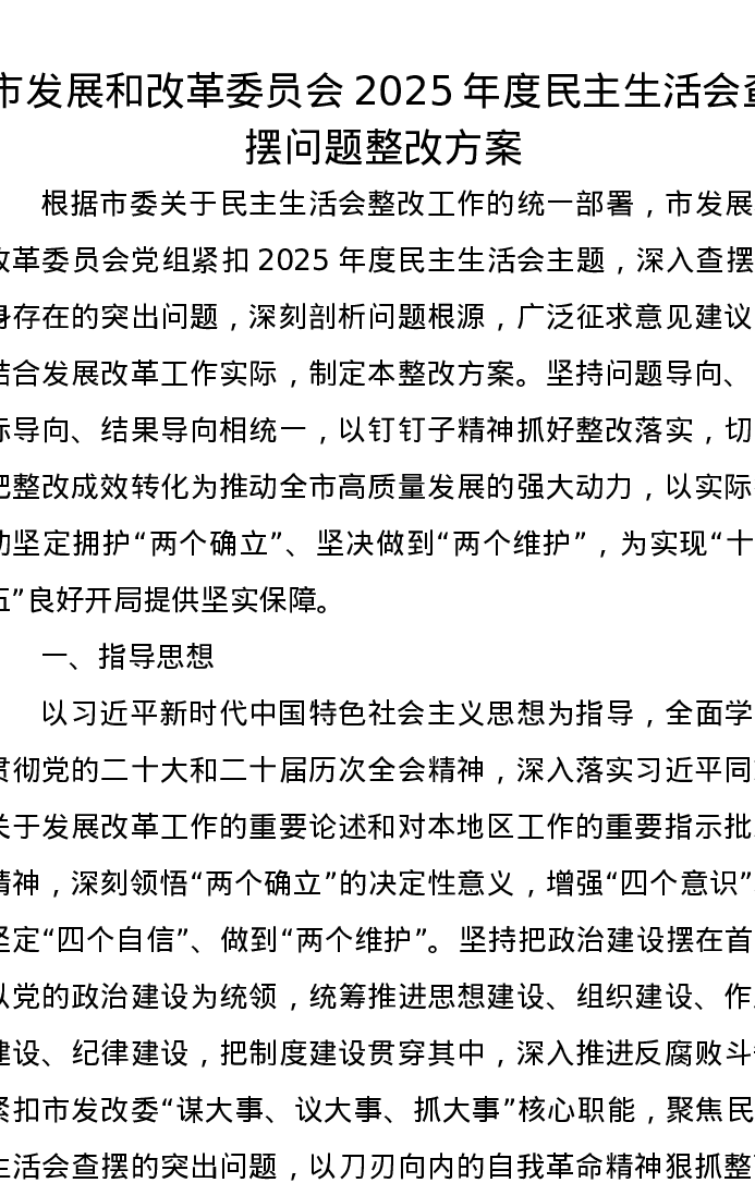 市发展和改革委员会2025年度xxxxx查摆问题整改方案