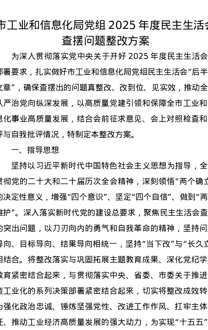 市工业和信息化局党组2025年度xxxxx查摆问题整改方案