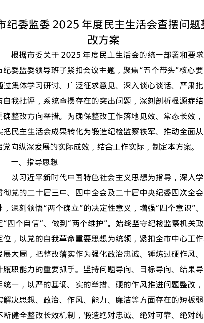 市纪委监委2025年度xxxxx查摆问题整改方案