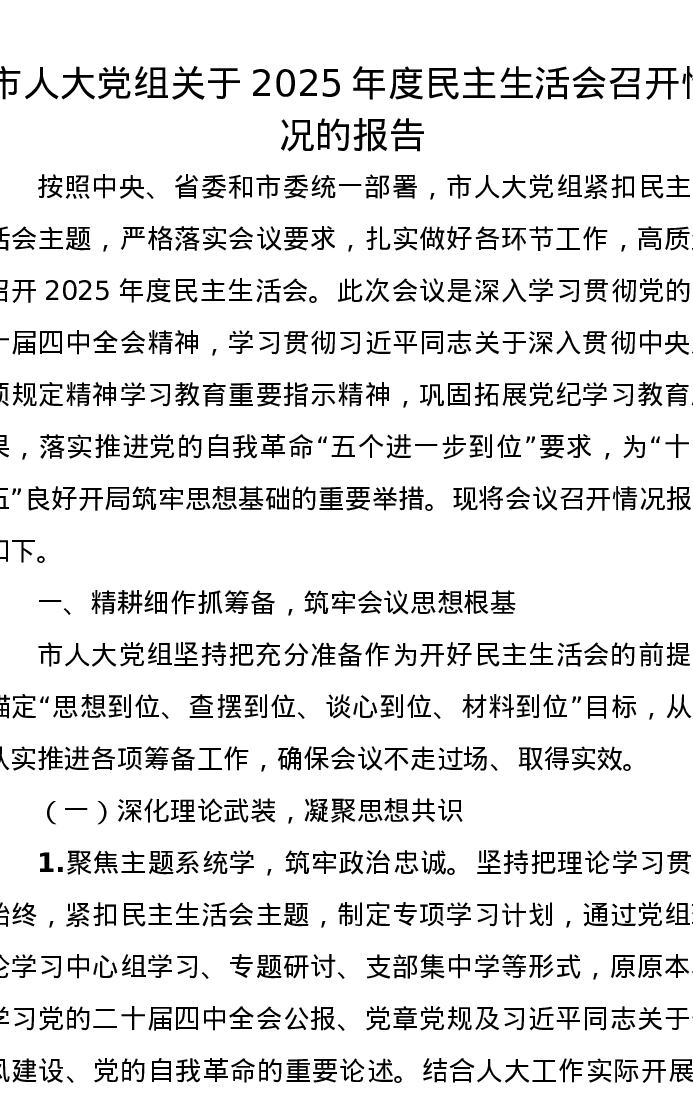 市人大党组关于2025年度xxxxx召开情况的报告