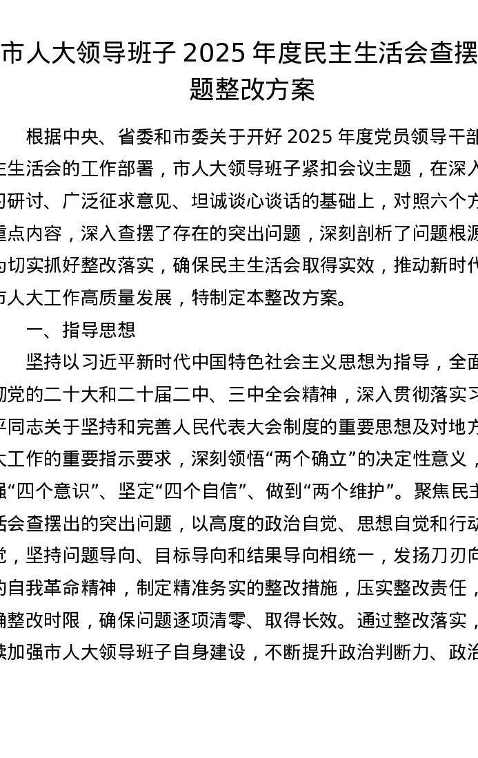 市人大领导班子2025年度xxxxx查摆问题整改方案