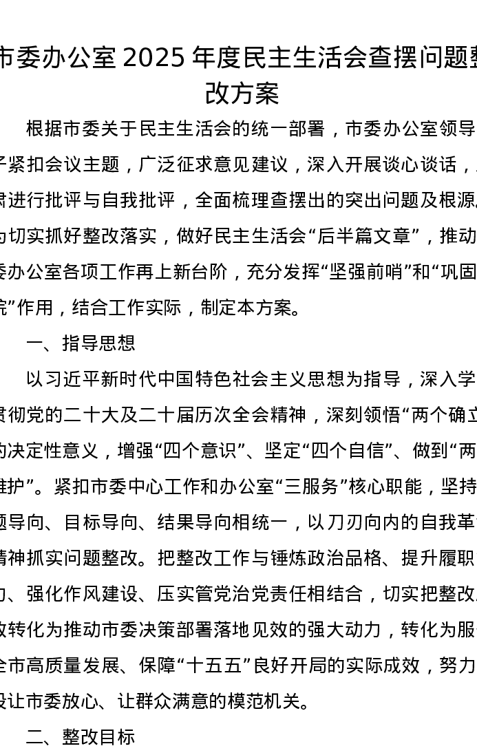 市委办公室2025年度xxxxx查摆问题整改方案