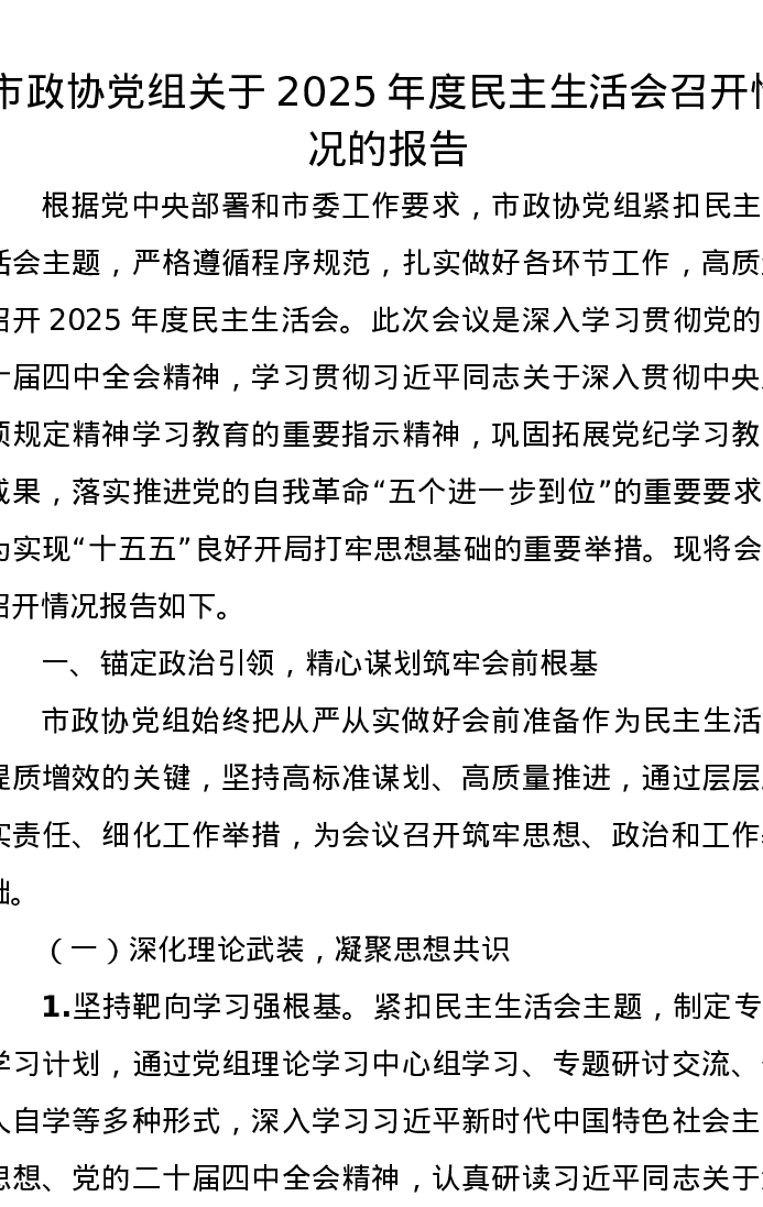 市政协党组关于2025年度xxxxx召开情况的报告
