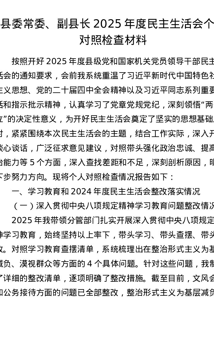 县委常委、副县长2025年度xxxxx个人对照检查材料